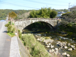 明治十九年度第四拾六号路線字市ノ瀬橋 臨時架換目論見変更ノ義二付上申 客年七月中非常ノ洪水ニテ当下河内村字市ノ瀬石橋流失二付臨時石輪橋架換ノ義同月中上申仕検査官出張之際土橋架設ノ義御回達モ有之候処村方一同石橋建築奉願度情願二付其段同十一月中再上申仕候処御聞届難相成旨御指令ノ上終二土橋架換ノ義客年十一月十九日付ヲ以テ御指令相成候二付一旦石橋架換ノ義ハ村方一同断念仕土橋着手ノ積先般来用材等見積方仕候処元来用材乏敷上御下附相成候土橋目論見書中松丸木末ノロ尺二寸長三丈二尺八本全長二丈八尺四本杉丸太長二丈四尺末ノロ壱尺六本其他右二準シ多分ノ杉松用材有之候処右等立木村内山林二無之他村遠隔ノ地二相求メ候テハ如何様多人相掛ケ候モ運搬出来不申殆ント手ヲ束子当惑罷在候仕合然ル処元来村方石橋切望ノ上前述用材排底二付テハ一層憾覚ヲ増シ是非石橋架換奉願度申出候義二御座候尤十九年度土木経費ノ御都合ニテ石橋ノ御許可難被為叶義ニモ有之候ラハゝ来二一年度二差延候テモ石橋架設奉願度村民共情願二御座候間前陳照察ノ上特別ノ御詮議ヲ以テ何卒十九年度二於テ石輪橋二御変更被成下度別紙目論見帳相添此段上申候也 明治二十年二月十四日 天草郡本村外ニケ村戸長 佐藤信邦 □印 熊本県知事 富岡敬明殿 天草郡下河内村 一石輪橋 長拾壱間 幅三問 此平坪三拾三坪 是ハ明治十五年四月架換本年七月洪水ニテ落橋二付架換之積 (天草高校図書館蔵) 以上史料は 「本町の歴史」 本渡市本町公民館発行 より |