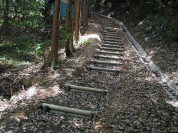 遊歩道。むかし、5人が歩いた道は、生活道とはいえ、こんなに 整備はしてなかったに違いない。 せっかく整備してあるが、まだ、この道ですれ違った人はいない。 |